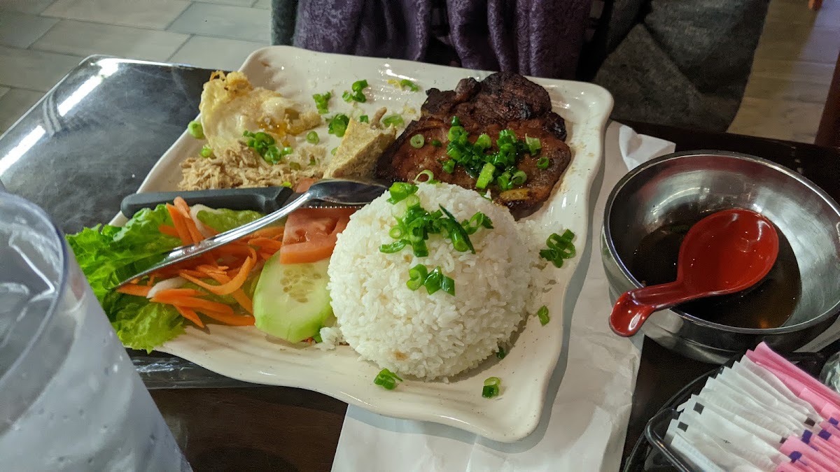 I still can't pronounce " Bun Bò Hùe" properly., But, I ordered it anyway…Great lunch here! The Shrimp and pork rolls and the Vietnamese Egg rolls were fantastic! I could make the entire meal of the egg rolls, but, hold the fish sauce. I just don’t like it. We had the Grilled Chicken Sandwich, the Grilled Pork and Egg Roll Bowl and the Bun Bò Hùe. The Grilled Pork and Egg Roll Bowl was the best. The flavors of the grilled pork stood out. The Bun Bò Hùe was not the best I have ever had but it was good. After tasting the grilled pork, the grilled pork sandwich would have been a better choice than the grilled chicken sandwich.