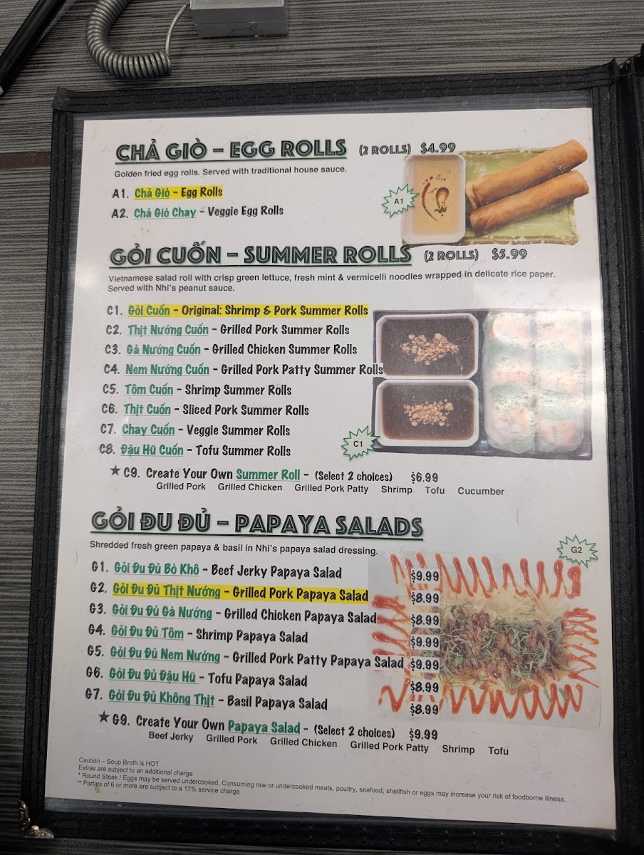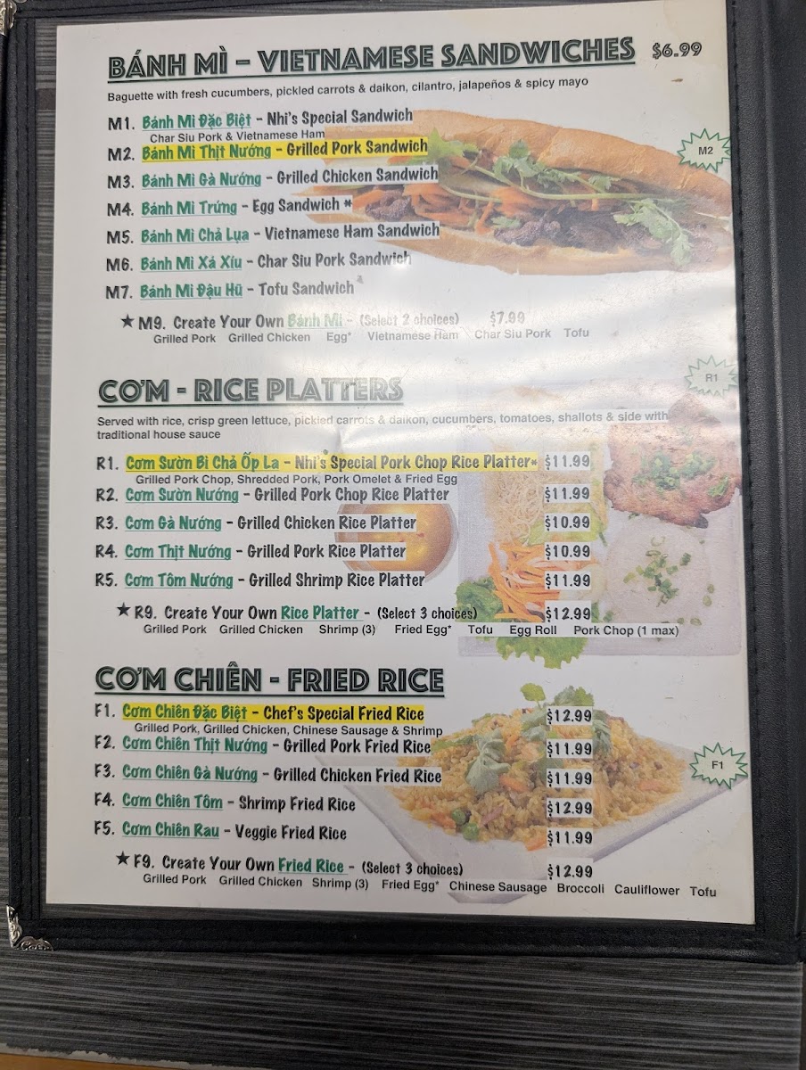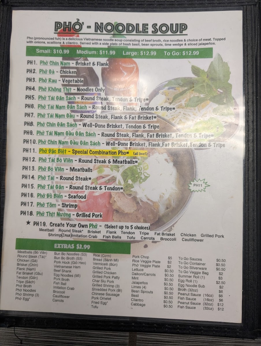 Phở Nhi Vietnamese Noodle House Menu
