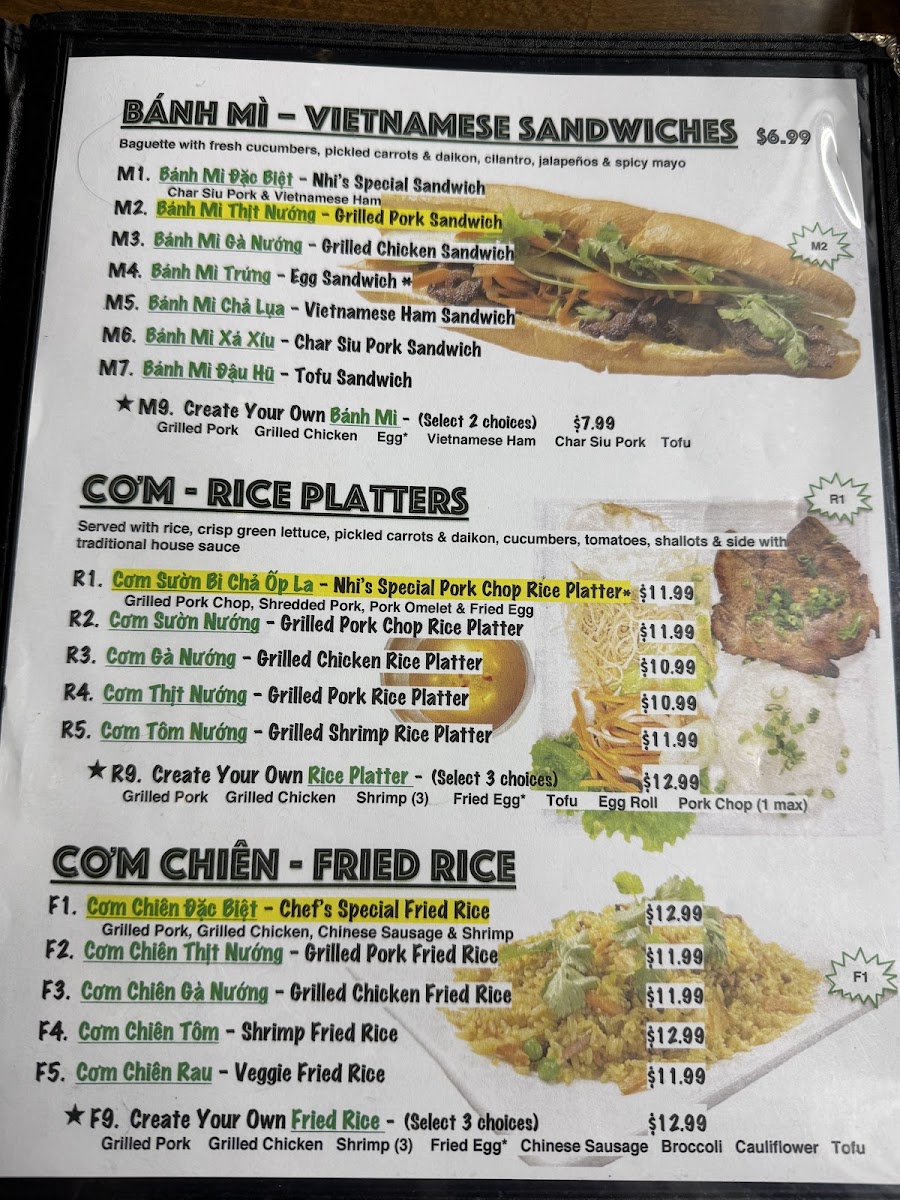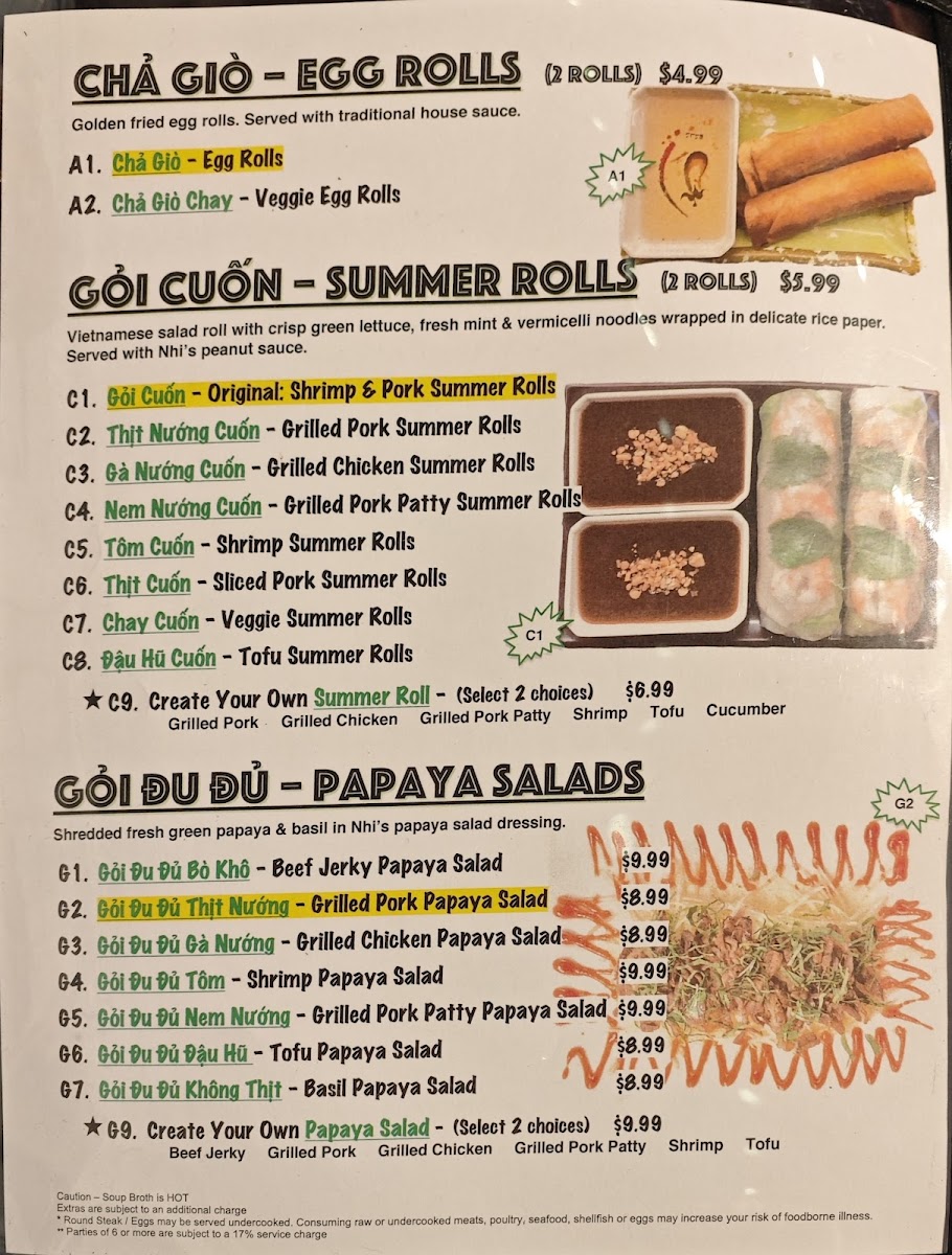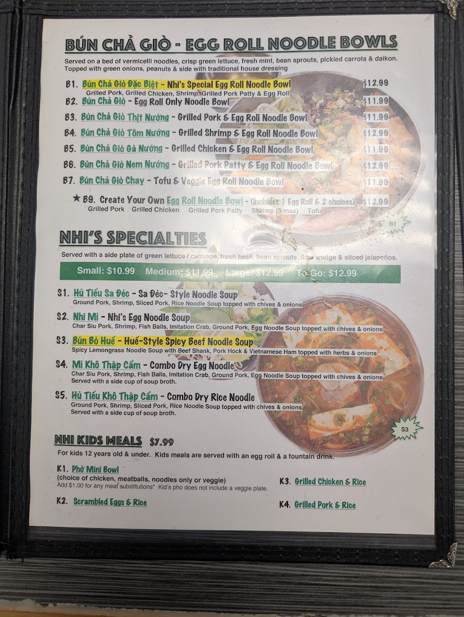 Phở Nhi Vietnamese Noodle House Menu
